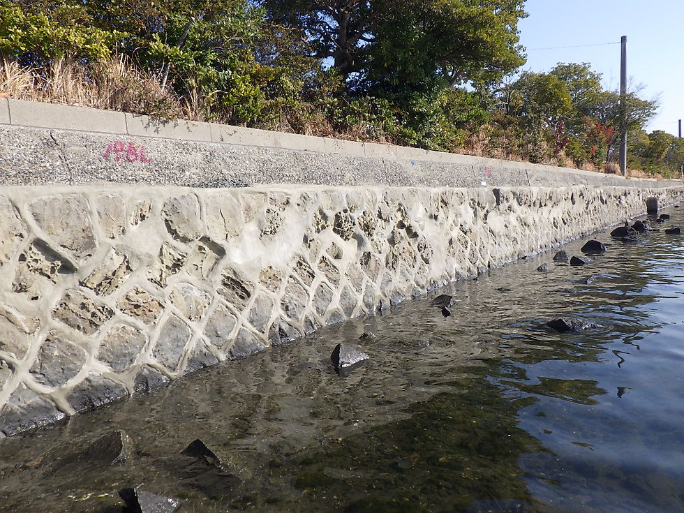 積石は抜け落ちている箇所が多く、背面の土砂は洗堀されています。